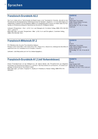 Französisch-Grundstufe A1.2 (mit Vorkenntnissen) VG4080732