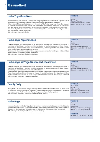 In diesem Kurs üben wir Hatha-Yoga. Durch dynamische und isometrische Übungen wird das Körperbe- Angela Heer